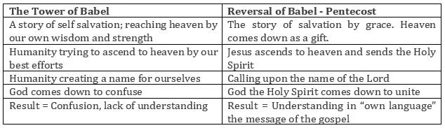 In addition to the signs of wind and fire, the strangest sign God gave at Pentecost was ability to speak in different tongues/languages. What was this all about? By listing all the nations represented (v.9-11) and highlighting the miracle of understanding, Acts is showing us that God is reversing the curse of Babel.
